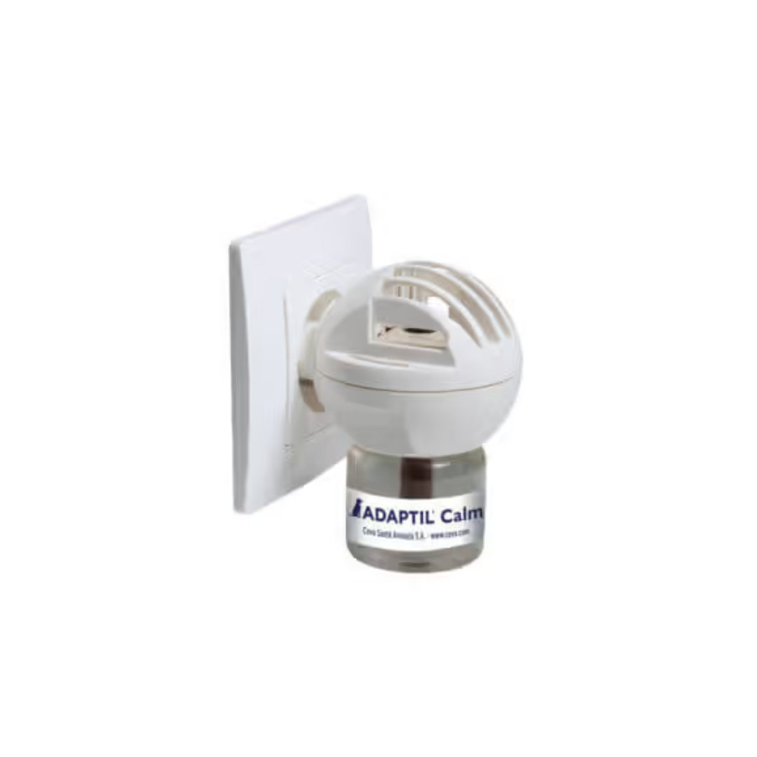 ADAPTIL Calm Recambio cada mes para continuar ayudando a tu perro a estar calmado y relajado en casa, en situaciones como quedarse solo en casa, ruidos fuertes, visitas y miedos. ADAPTIL Calm te mantiene siempre unido a tu perro ya que ayuda a crear un ambiente seguro y tranquilo en tu hogar. El uso constante de ADAPTIL le transmite una sensación continua de seguridad a tu perro. Científicamente probado. Recomendado y usado por los veterinarios. ¡Enchúfalo y listo! Enrosca al envase en el difusor y conéctalo a un enchufe. Mantén el difusor enchufado todo el tiempo. *El recambio dura hasta 30 días (48 mL) *Cubre un área de hasta 70 m2 *Evita enchufar el difusor debajo de estanterías, detrás de puertas, cortinas o muebles, porque no funcionará correctamente.