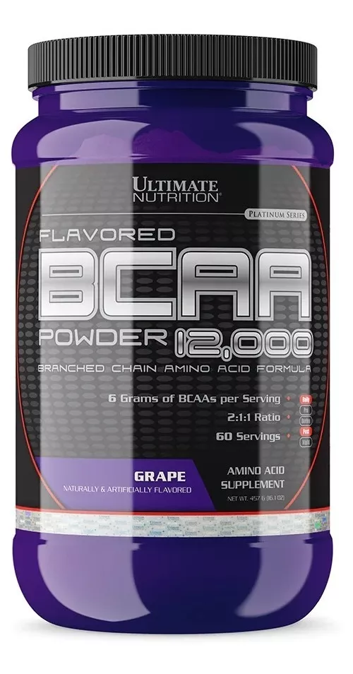 ULTIMATE NUTRITION Bcaa 12000 es un suplemento en polvo a base de aminoácidos de cadena ramificada (aminoácidos esenciales que deben ser consumidos a través de la alimentación o suplementos) en proporción 2:1:1 (leucina, valina e isoleucina).
