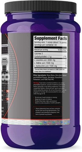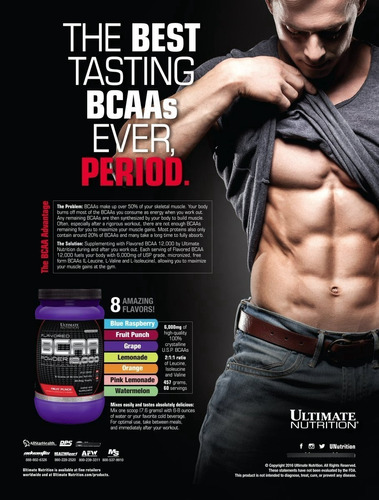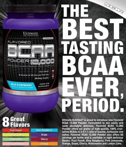 ULTIMATE NUTRITION Bcaa 12000 es un suplemento en polvo a base de aminoácidos de cadena ramificada (aminoácidos esenciales que deben ser consumidos a través de la alimentación o suplementos) en proporción 2:1:1 (leucina, valina e isoleucina).