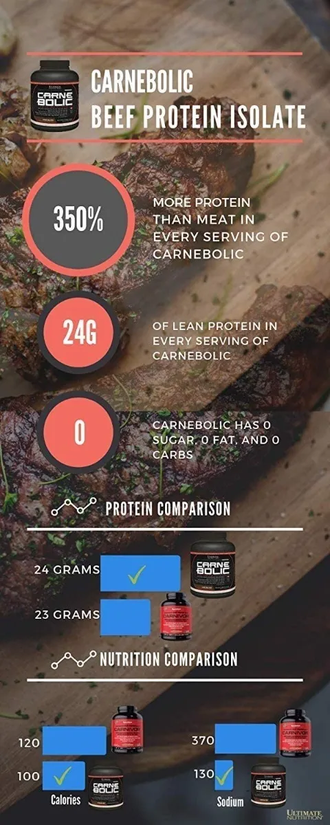 Aislamiento de proteína de carne de vacuno - Carnebolic es un polvo aislado de proteína de vacuno sin lactosa con 0.85 oz de proteína de alta calidad en cada porción
