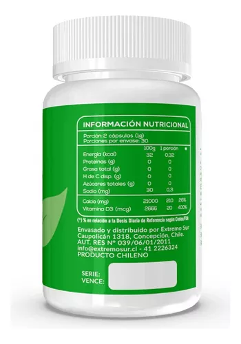 Ingredientes: Citrato de Calcio, Colecalciferol (Vit. D3), capsula de gelatina.