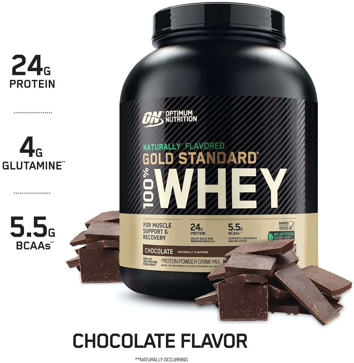 Cada porción de la proteína de suero en polvo más vendida del mundo proporciona 24 gramos de proteína de suero. El aislado de proteína de suero es el ingrediente principal, al que se han "aislado" más carbohidratos, grasas y lactosa mediante tecnologías de filtrado sofisticadas. El polvo también es instantáneo para mezclar con cuchara y vaso. El hecho de que hayamos formulado este polvo fácil de mezclar con nuestros altos estándares, y sin sabores, edulcorantes ni colorantes artificiales, lo convierte en el GOLD STANDARD para la calidad de las proteínas.