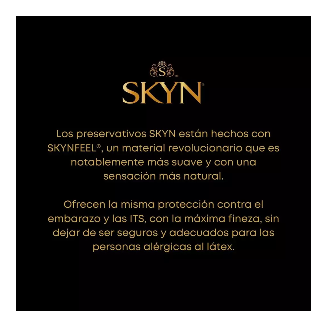 Esto no es solo una caja de condones. Esta es la última tecnología de condones para una experiencia sexual verdaderamente íntima. Nuestro material SKYNFEEL es suave y cómodo, para un ajuste y sensación más naturales. Tienes un boleto para una experiencia de increíble sensibilidad, que te permite vertualmente a ti y a tu pareja sentir todo.