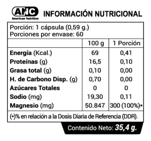 Magnesio 500mg 60 Cápsulas Anc. Sabor Sin Sabor