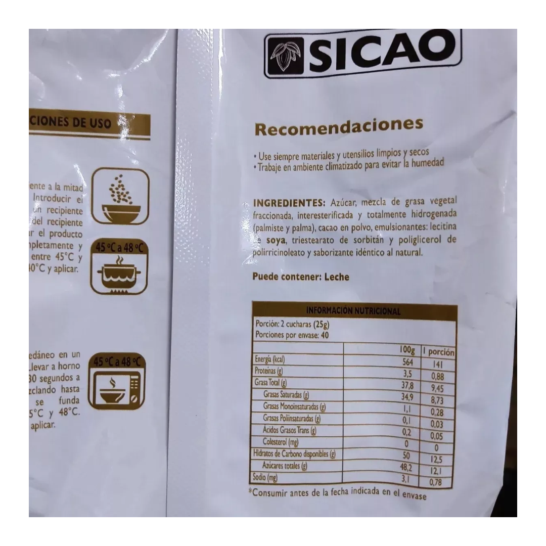 Descubre la Cobertura Semi Amargo Alta Fluidez Sicao, la elección perfecta para los amantes del chocolate que buscan calidad y versatilidad en sus creaciones. Este chocolate, ideal para la elaboración de bombones, figuras, rellenos y decoraciones, se presenta en un práctico formato de botones que facilita su uso. Fabricado por Barry Callebaut, un líder mundial en la producción de productos de chocolate y cacao, garantiza un sabor excepcional y una textura fluida que se adapta a diversas aplicaciones. Este producto viene en una bolsa de 1 kg, asegurando que tengas suficiente chocolate para tus proyectos. Además, su condición de nuevo y su característica de tener un vencimiento, aseguran que recibirás un producto fresco y de alta calidad. Disfruta de la experiencia de trabajar con un chocolate diseñado para expertos y lleva tus creaciones al siguiente nivel.