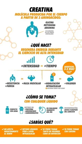 La creatina es un derivado de los aminoácidos que ayuda a aumentar el rendimiento deportivo durante el entrenamiento y a incrementar la masa muscular.